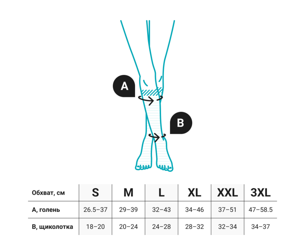 • Физиологически распределенная градуированная компрессия: лодыжка 100%, середина икры 80%;