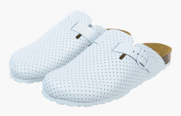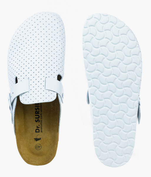 Универсальные анатомические сабо СС-11103-71 Dr.Sursil белого цвета с верхом из натуральной кожи с перфорацией для наилучшего воздухообмена.